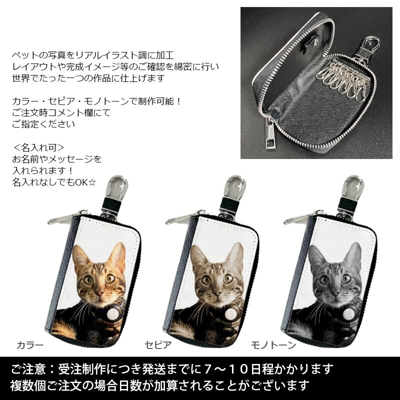送料無料|オーダーメイド スマートキーケース-ペットの写真で作る オリジナル キーケース 猫 犬 リアルイラスト