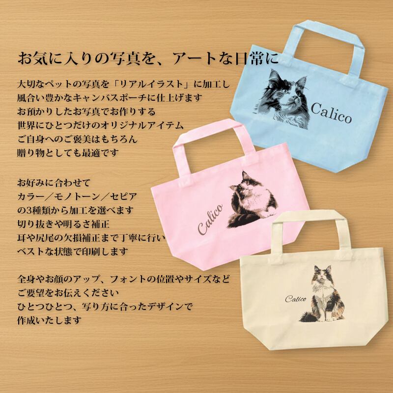 送料無料|オーダーメイド ミニトートバッグ(ソフトカラー)-猫 犬 ペットの写真でオリジナル バッグ お散歩バッグ ランチトート