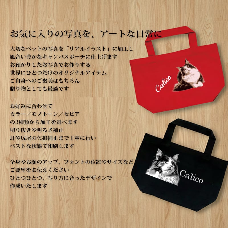 送料無料|オーダーメイド ミニトートバッグ(スタイリッシュカラー)-猫 犬 ペットの写真でオリジナル バッグ お散歩バッグ ランチトート