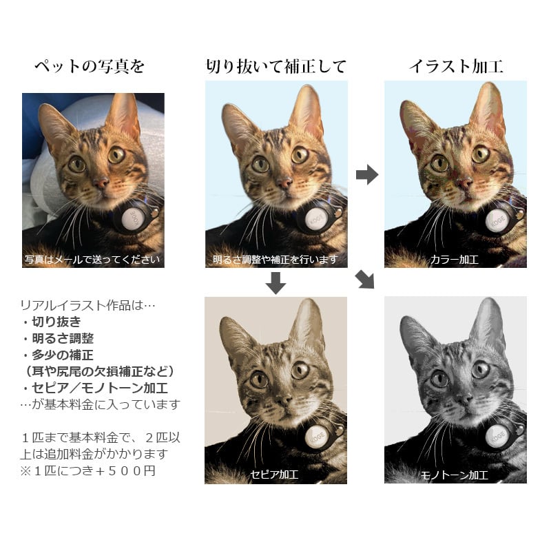 大切なペットの写真を「リアルイラスト」に加工し