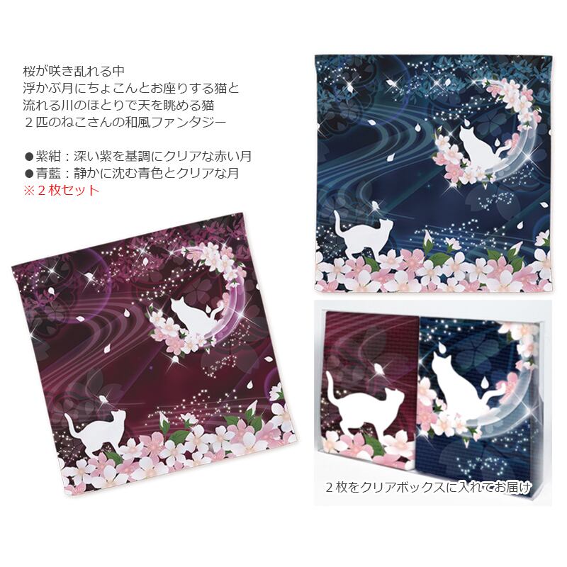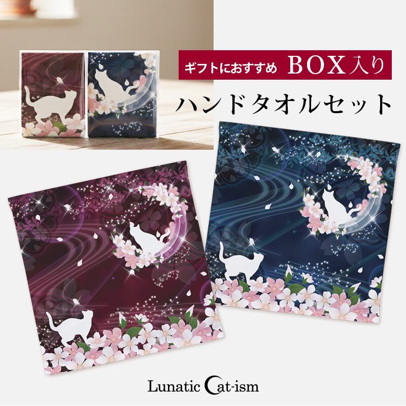 送料無料|ハンドタオル 2枚セット(ギフトBOX入り)-月花猫~桜花宵ノ顔 ギフト プレゼント 贈答