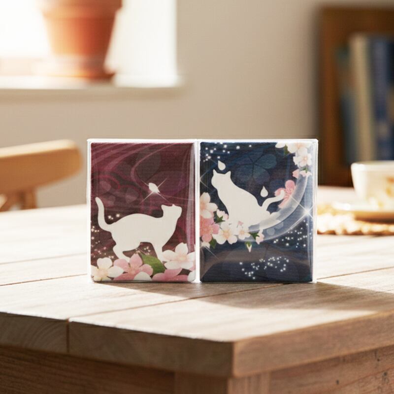 ● モチーフ: 猫、黒猫、桜、花びら、月夜、夜空、流星、春